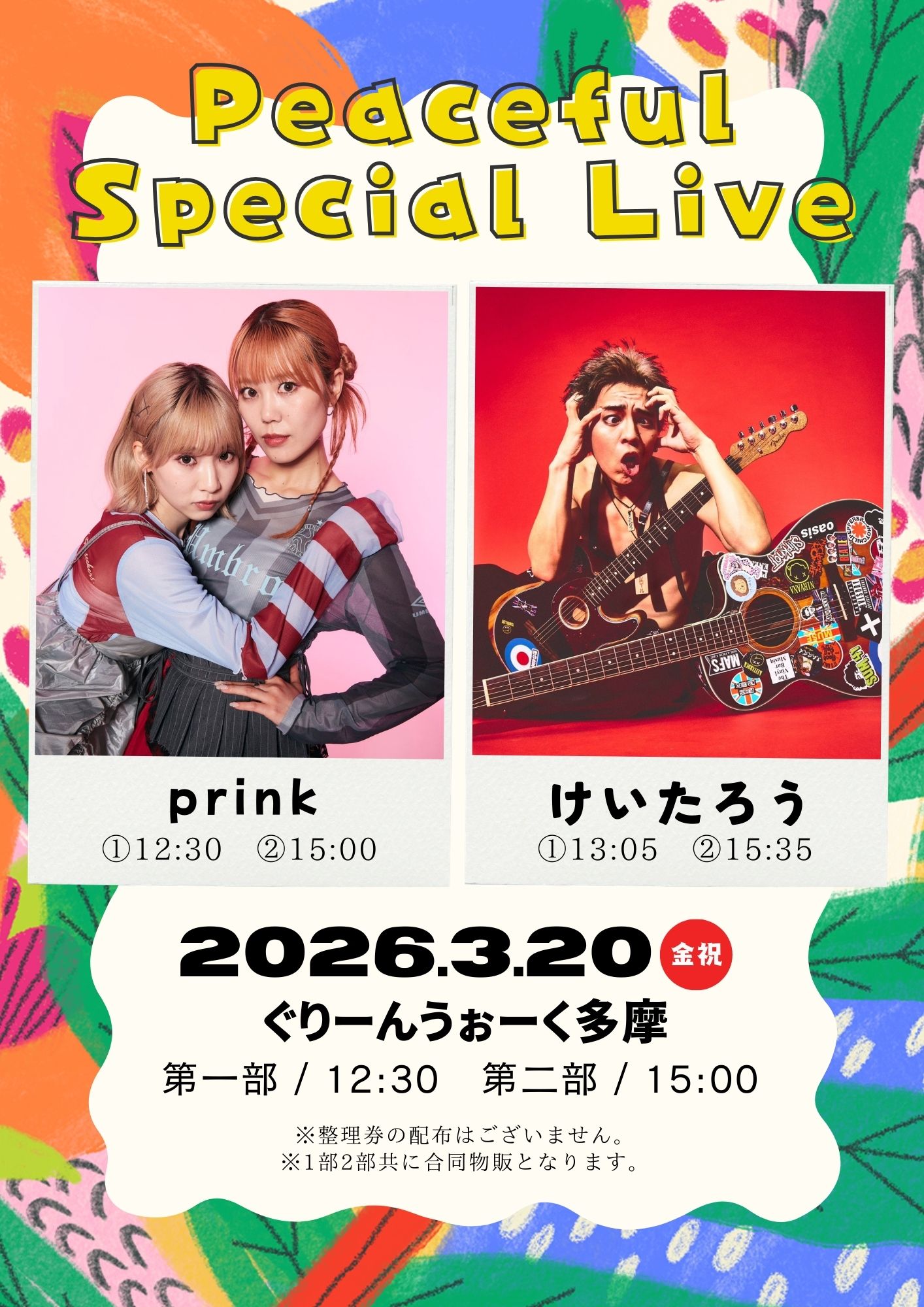時間:1部 12:30〜 prink 13:05〜 けいたろう